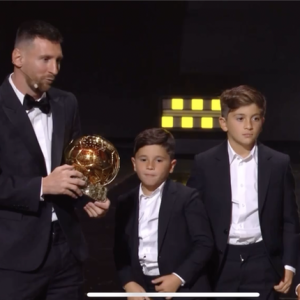 The three offspring of the Messi family displayed the customary ‘antagonistic admirer’ countenance upon their father’s reception of the 2023 Golden Ball